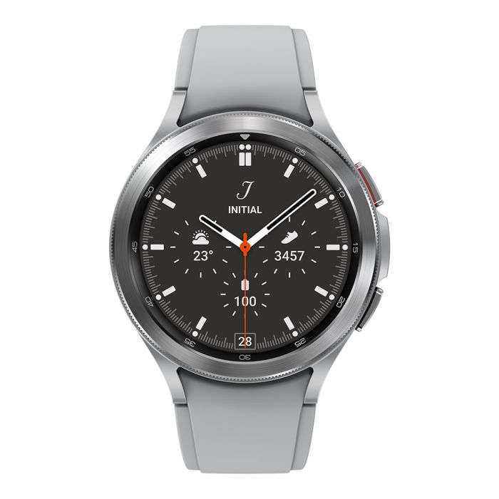 Die Galaxy Watch 4 Classic in der 46 mm Version hat Abmessungen von 45,5 x 45,5 x 11 Millimetern und ein Gewicht von 52 Gramm. Mit einer Auflösung von 450 x 450 Pixeln bei einer Größe von 1,36 Zoll liefert das AMOLED-Display ein scharfes Bild. Die Version ist in den Farben Black und Silver erhältlich.